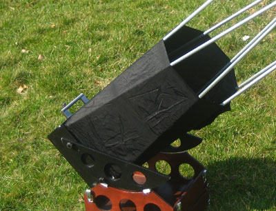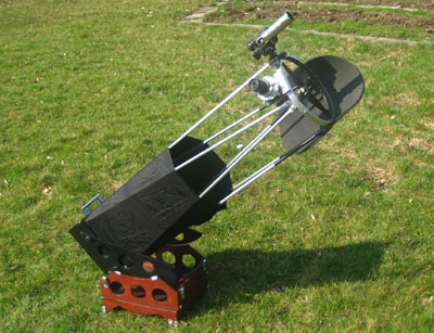 This is my most recent Dob, a 10" f/5 travel Dob that I have built during winter 2011/12. I wanted to make a telescope with the following objectives: