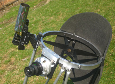 ... is attached to the lower end of the telescope by Velcro bands. |