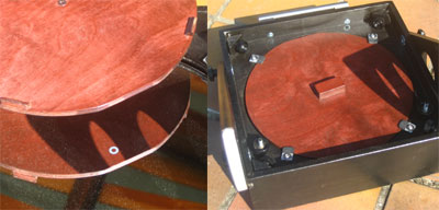 ... is made of 9mm plywood with a 6.5mm mirror baffle. All parts of the box are connected by groove and tongue, similar as shown here. The altitude bearings are made of 12mm plywood. |