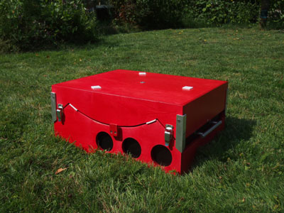 Sorry, in German only for now ... Diesen 12" Dobson habe ich für Gitti und Hajü Merk gebaut, die eine neue, transportable Hülle für die Optik ihres Meade Lightbridge suchten. Obwohl der Tubus des Lightbridge zerlegbar ist, sind die Einzelteile, vor allem die Rockerbox, sehr sperrig und schwer. Zielvorgaben für dieses Teleskop waren gute Alltagstauglichkeit, schneller Aufbau und Stabilität. Das Teleskop sollte kompakt verpackbar, gut transportabel im Auto und nur zur Not auch für Flugreisen geeignet sein. Leichtigkeit stand jedoch nicht im Vordergrund. Vom Design orientierten Gitti, Hajü und ich uns an meinem 10" Reisedobson, haben jedoch einige Dinge modifiziert, um einen schnellen Aufbau ohne viel Schrauberei zu erlauben. Wie bei meinem 10" Dobson entschieden wir uns für einen Monoring als obere Einheit, an dem jedoch der Okularauszug und der Fangspiegel fest montiert bleiben, um den Aufbau zu erleichtern. Bei meinem 10" Dob wird das alles demontiert, was den Aufbau komplizierter macht. |