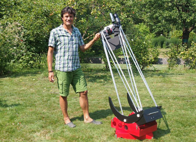 Hier noch einmal das fertig aufgebaute Teleskop mit Größenvergleich. |