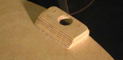 Um den Dobson auch flugzeugtauglich zu machen, kann der Spiegel in der Spiegelzelle fixiert werden (siehe auch Ulli's Spiegelarretierung). Hierzu kann die Spiegelabdeckung von oben mit der Zelle verschraubt werden. Die Spiegelclips werden hierfür abgeschraubt. Stattdessen drücken kleine Holzkeile am Rand der Spiegelabdeckung von oben auf die Spiegelfase. |