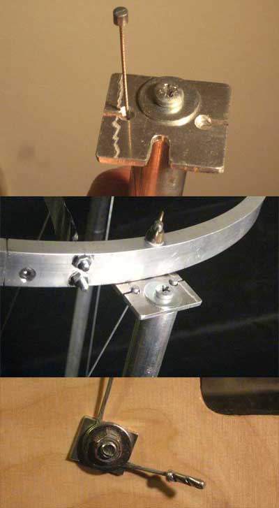 Für die Strings wurden Fahrrad-Schaltzüge (1.2 mm) verwendet. Die Stangen haben oben Endplatten mit kleinen Aussparungen, in die die Schaltnippel einfach eingehängt werden. Dadurch wird der Aufbau sehr schnell und problemlos.