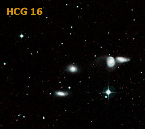 In Hickson 16 in Cetus, the four members are already somewhat fainter and the appearance becomes more typical for a Hickson Group. |