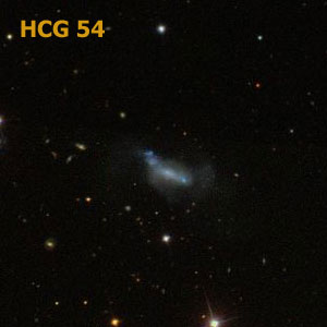 Hickson 54 is another very tight chain of tiny galaxies in Leo. This group stretches over only 40 arcseconds with members of only 5 arcseconds diameter and appears even more difficult than preceding Hickson 55. |