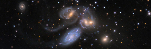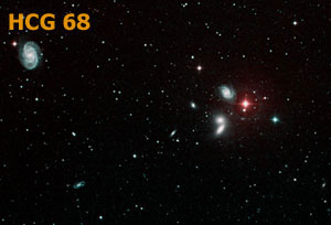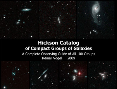 For the observing amateur, Hickson Compact Groups (HCGs) are fascinating targets. There are a few groups that are nice associations of bright galaxies, as for instance Hickson 44 in Leo or Hickson 68 in Canes Venatici. These two groups are easy targets already for small telescopes and there are many pictures of them available on the internet. But these two groups are clearly exemptions. Most Hickson Groups include only fainter galaxies and are much more compact. Hence, their successful observation profits from aperture (and dark skies, of course) and many of the remaining catalog members are interesting targets mostly for observers with larger telescopes of 12" or even more aperture. These groups include famous examples as "The Box" in Coma (Hickson 61), Stephan's Quintet in Pegasus (Hickson 92), Copeland's Septet in Leo (Hickson 57), or challenging Seyfert's Sextet in Serpens (Hickson 79). Other challenging examples without own names include Hickson 55 in Draco or Hickson 56 in Ursa major. Most