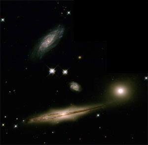 Hickson 57 in Leo is also named "Copeland's Septet". Though it is a dense group, it is less compact than "Seyfert's Sextet" further below and therefore easier to split into individual galaxies. |
