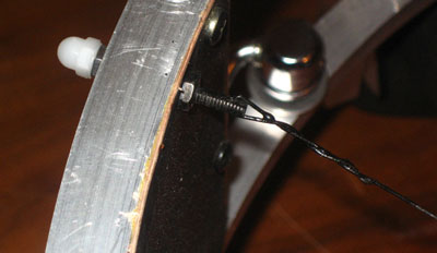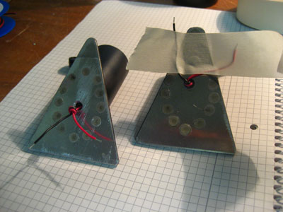 Noch einfacher kann man es sich machen, wenn man in ein Alureststück einen kleinen Schlitz sägt. Mit diesem kleinen Tool wird das Verzwirbeln der Drähte zu einem Kinderspiel. Am besten ist es, wenn man das Ganze unter Zug macht. | ![]() |