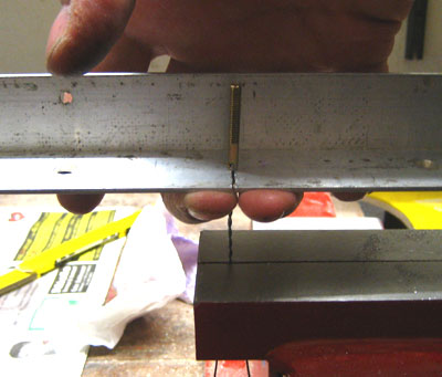 hierfür eine kleine Halterung aus Holz, in die das Blech und der geschlitzte