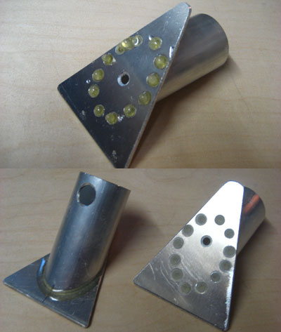 werden in die Halterplatte eine Reihe kleiner Löcher gebohrt und mit dem