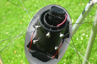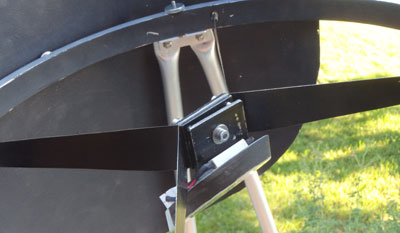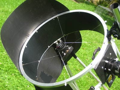 Dieser Halter kann auch mit konventionellen Spinnen kombiniert werden, wie hier in der ersten Version meines 14" Dobsons. | ![]() |