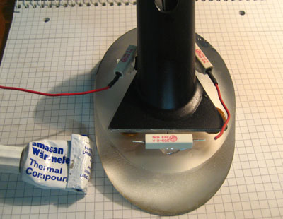 Die Widerstände kann man zusätzlich noch nach außen thermisch mit Moosgummi isolieren. Aufgrund der besseren Wärmleitfähigkeit geht jedoch sowieso der größte Teil der Wärme in's Glas. | ![]() |