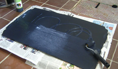 Dieses Material lackiere ich von einer Seite Schwarz mit matter
