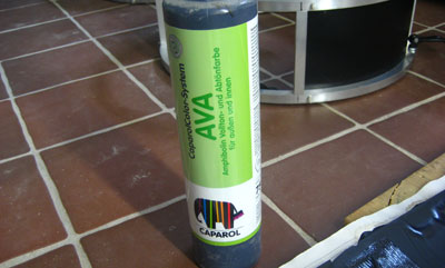 Für die Herstellung der Hutblende kann man das PE Material auf einem Brett fixieren und die Farbe mit einer Rolle auftragen. Zwei Aufträge reichen in der Regel. | ![]() |