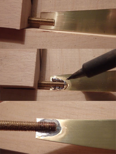 glatten Blechen lösen. Einfacher und stabiler ist es, die Messingbleche in geschlitzte Messinggewindestücke einzulöten. Das funktioniert sogar mit ganz normalem Lötzinn und Lötkolben. |