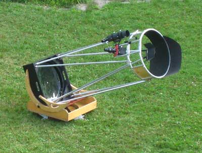 Bedingt durch das höhere Gewicht des 22-Zoll Dobsons (45 kg) im Vergleich zum 14-Zöller (26 kg) musste die Plattform sehr stabil ausgelegt werden. Trotzdem sollte sie so flach wie möglich gebaut werden, um die Einblickhöhe des Lowriders nicht unnötig zu erhöhen. Die Gesamthöhe der Plattform ist 85 mm und sie ersetzt das 25 mm hohe Bodenbrett des Lowriders. Der Einblick erhöht sich somit lediglich um 60 mm. Sozusagen die passende Lowrider-Plattform zum Lowrider-Dobson.