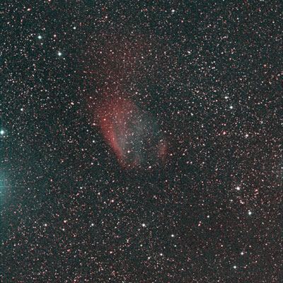 Sharpless 82 Sometimes termed Little Cocoon Nebula. Very diffuse glow without filter (RN part) , with H beta filter somewhat brighter and more compact. Similar to Cocoon, but much fainter.