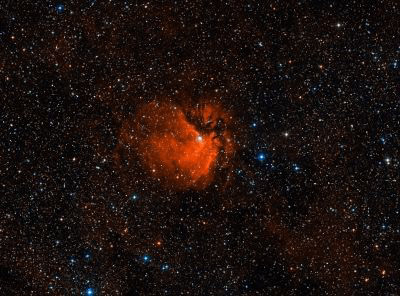 Sharpless 86 Visible with OIII, H beta and UHC, large and very structured nebula around small cluster, prominent dark lane on image only suspected