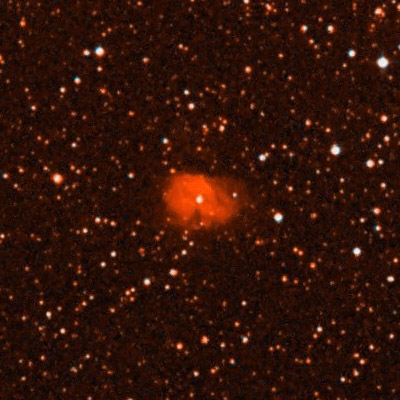 This is the large PN Capellaro-Turatto-Salvadori-Sabbadin 3 (CTSS 3) in Aquila. Extremely faint object bordered by two stars. SW section is better defined and roughly rectangular, NE section is larger and more diffuse. Responds best to UHC, but is also visible with OIII and H beta. For more information on these large PN, see here.
