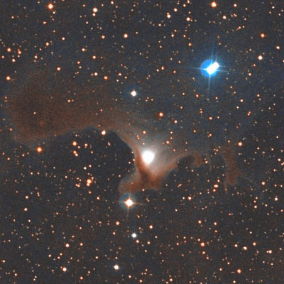 Sharpless 106 Sharpless 106 appears on images as a wonderful biolar nebula about 3 degrees SW of Gamma Cygni. Even on the DSS, the nebula appears quite bright and should therefore be an easy object at the eyepiece. That's the theory. In practice this object has challenged me during many observing sessions, using all available filters. But I failed in detecting even the apparently bright southern lobe of it. Entering at some point Friedl Lamprecht, who adviced use no filter at all. Et voila, there it was, though still not an easy object. Using 350x with my 22" Dob, the southern lobe was visible using indirect vision as a very faint extended object. It dissappeared as as soon as I switched from unfiltered to UHC using my filter slide. Even though Sharpless 106 looks like a regular bipolar PN, it isn't. It is not a pure emission nebula, but obviously involves a major amount of light scattered by dust particles, such that chances for successful observation are best unfiltered. The unusual bipolar shape of the nebula is the consequence of a buried young OB star, which is surrounded by a thin disk of matter, confining the light of the star along the axis of the disk. The molecular cloud into which the star is embedded is an active star forming region with a number of YSOs.