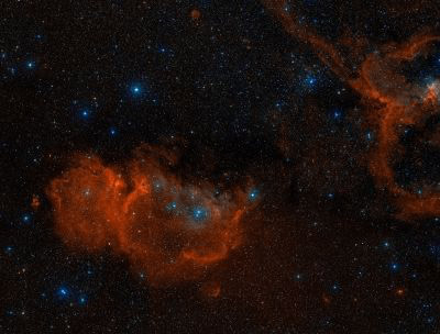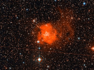 Sharpless 199 This is the highly obscured galaxy Maffei 1. Maffei 1 is easily visible as a distinct diffuse and elongated glow behind a loose OC.