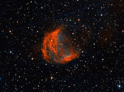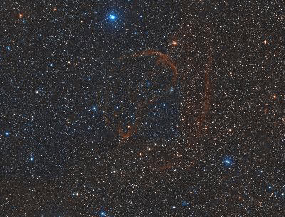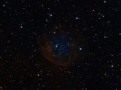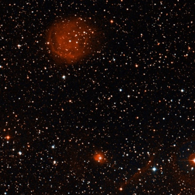Sharpless 308 Fantastic Wolf-Rayet bubble around the WR star EZ CMa or WR 6. Responds extremely well to OIII filter. Shell is most obvious as a crescent NW of o1 CMa, becoming fainter at NW. Brighter patch again at N to NE. At 80x under excellent conditions, the shell can be further followed from this N part down the E side back to o1 CMa, forming a closed bubble around EZ CMa. Only with 7mm exit pupil, the center appears filled and somewhat lighter than the outside of the bubble. This is not visible with 5.5mm exit pupil.