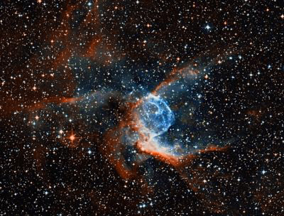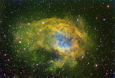 Sharpless 301 With OIII distinct and structured nebula with dark lane and superimposed stars.