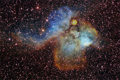 Sharpless 298 This is the Wolf-Rayet shell NGC 2359, Thor's Helmet. Responds extremely well to OIII filter. Very structured and bright WR nebula with shell, E bar and extensions toward NW and SW.