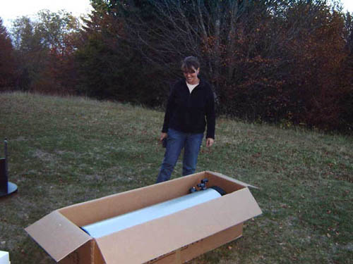 Der Tubus des Dobsons in der Transportverpackung