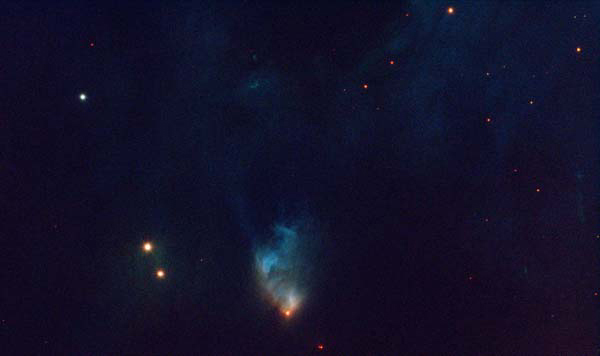 Die Aufnahme links von der ESO (mehr Info hier) zeigt Mc Neils Nebel beim ersten Auftauchen 2004. |
