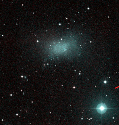 In Sextans B, there is a globular cluster that is marked in the inverted image to the left (mouse over). |