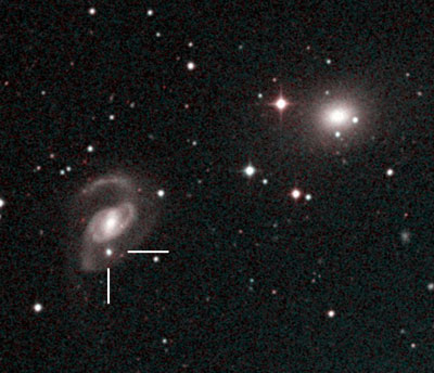 Mrk 205 is a an object with a long history. Despite the extremely different red shifts of Mrk 205 and NGC 4319, Halton Arp suspected a "bridge" between both objects, implying that they are close in space to each other and not a chance alignment along our line of sight. Arp was considering the hypothesis that the considerable red shift of the then new quasi-stellar objects or short quasars was not due to their distance from us. Instead, he suggested that they are objects being expelled from the nuclei of their "host galaxies" and that the red shift of their light had other reasons (such as, for instance, gravity). This was in strong disagreement to the general view of the scientific community, in particular Allan Sandage, leading to lasting controversies between the supporters of the two groups (with Arp's being certainly a minority). Visually, Mrk 205 is certainly not easy, but can be glimpsed already with a 14" and indirect vision. It is a bit off set from the core of NGC 4319, of which only the central part is visible. With 22", Mrk 205 is visible directly as a stellar object. |