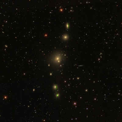 NGC 383 is a mag 12 galaxy and stands in the middle of an impressive chain of other mag 12 and 13 galaxies, as well as a fair number of fainter ones. Due to its brightness, this group is a rewarding target also for small and medium-sized telescopes. This galaxy group is at a distance of approximately 220 million LYs and belongs to the Pisces-Perseus super cluster.
