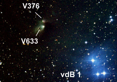 VdB 1 and V633/V376 Cas A reflection nebula and two YSOs in Cassiopeia 00 10 46.37 +58 46 10.3 (VdB 1)