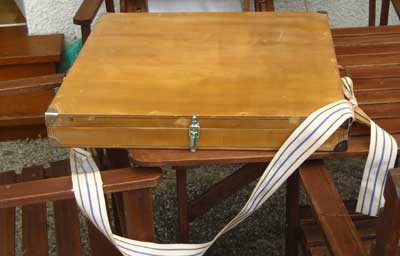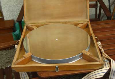 Die Spiegeltransportbox ... kam nachträglich dazu, um das schwerste zu schleppende Teil (die Spiegelbox) leichter zu machen und den Spiegel beim Transport besser zu schützen. Die Box hält den Spiegel sicher, auch hochkant, und kann zum Tragen einfach umgehängt werden. Für