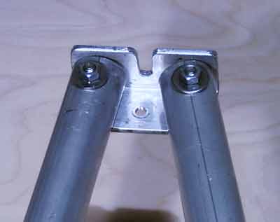 Die Stangen und die Klemmblöcke Die Stangen waren ursprünglich 22 x 1.2 mm Alurohre. Vom Handling her war das ausreichend, lediglich bei Wind gab es Vibrationen, die im höheren Vergrößerungsbereich störend waren. Mittlerweile habe ich den Stangensatz gegen 32x 1mm Stangen getauscht. Der Dob fühlt sich beim Bewegen noch mal steifer an. Wie es sich mit den Vibrationen verhält, wird sich erst über einen größeren Zeitraum zeigen. Die Stangen sind oben paarweise mit Aluwinkel zusammengefasst und werden über Schnellspanner am Hut befestigt. Diese Art der Stangenbefestigung gefällt mir von allen Alternativen mit Abstand am besten. Schnell, stabil, justierkonstant und sehr einfach zu realisieren.