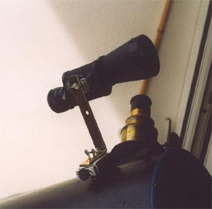 Both sides of the field glass were separated by a saw from the central focusing bar and the eyepiece sleeves were glued to the bodies by epoxy at a fixed position. The eyepieces itself can still be unscrewed from the bodies. One of the finders can be focused by the built in focusing adjustment, the other one by turning the eyepiece in its thread. The crosshairs are made of two hairs (hence the name!), glued to a cardboard ring, that exactly fitted on the field stop of the eyepiece without vignetting.